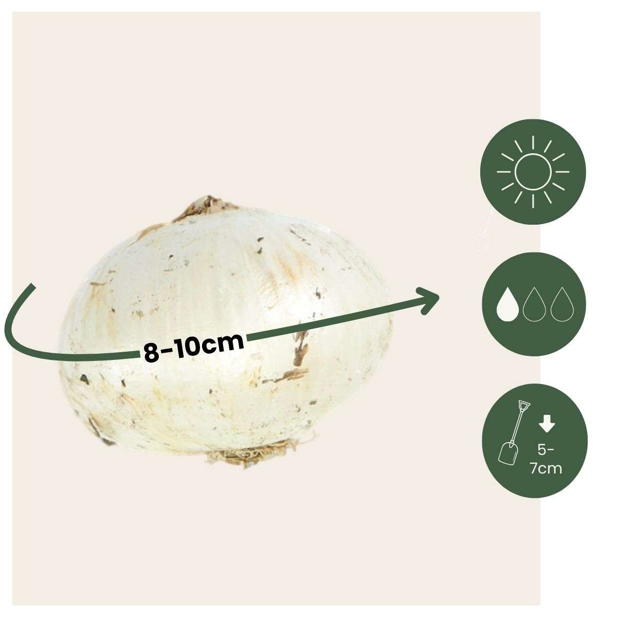 À la livraison, les bulbes de fleurs ont une circonférence d'environ 10 cm.