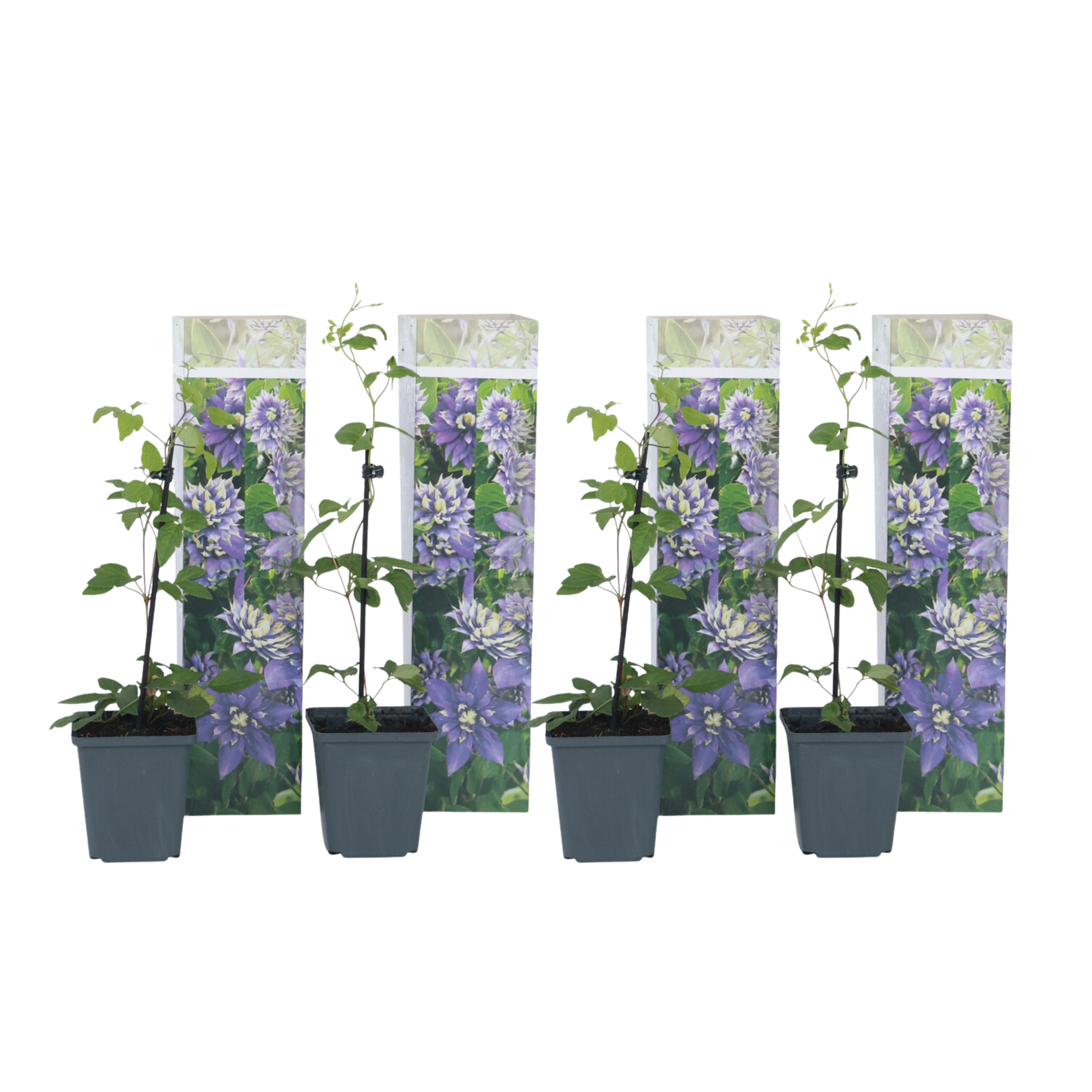 Clématite - Set de 4 - Clematis hybrid 'Taiga' - Hauteur 25-40cm - ⌀9cm