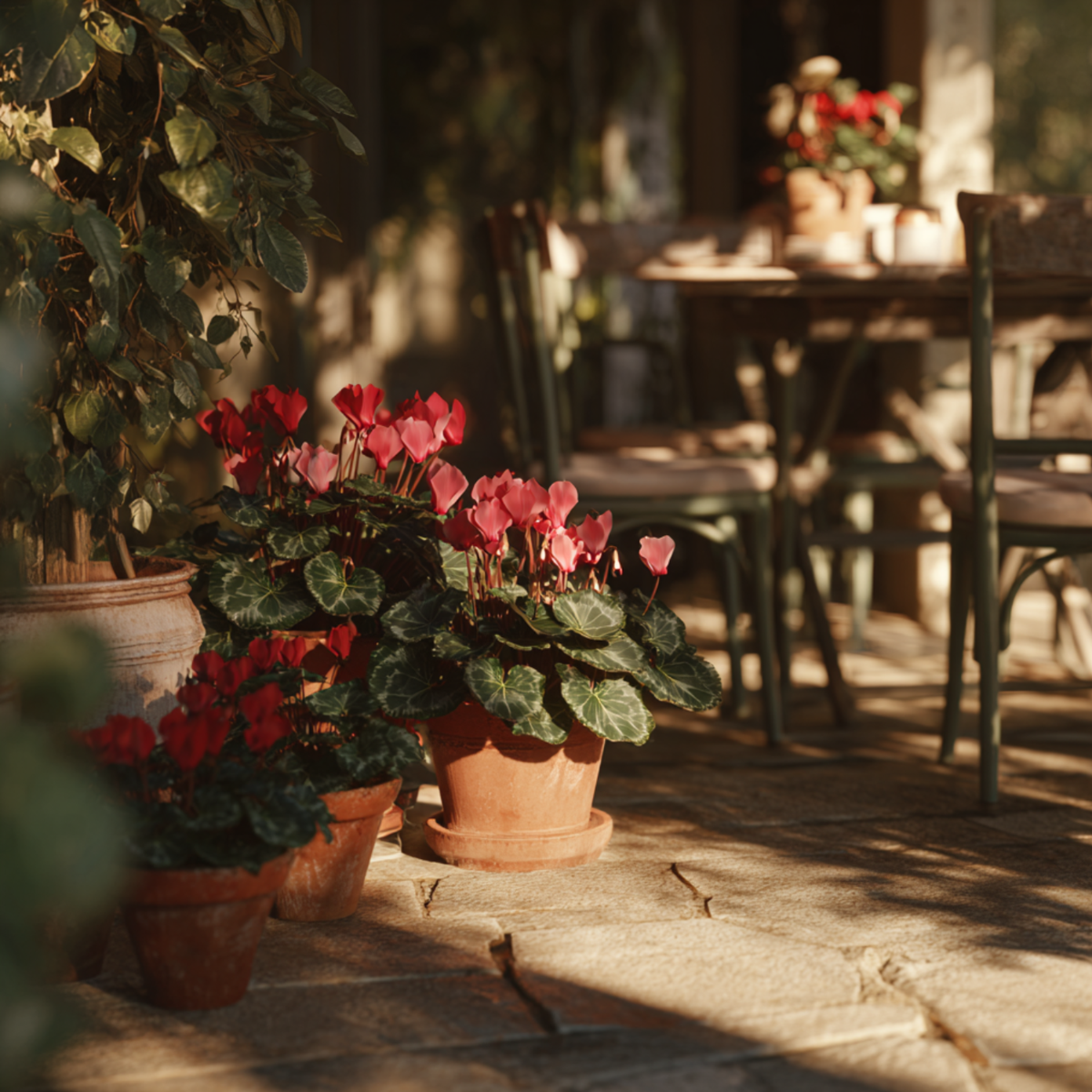 Le cyclamen est une plante robuste et facile à entretenir, idéale pour les environnements lumineux mais frais. Évitez la lumière directe du soleil et les sources de chaleur comme les radiateurs. La température idéale se situe autour de 15 °C. Arrosez régulièrement mais modérément, en gardant le sol légèrement humide sans excès. Évitez d’arroser le feuillage ou les fleurs ; versez l’eau directement sur la terre ou plongez le pot intérieur 30 minutes dans l’eau avant de bien le laisser s’égoutter. En hiver, réduisez l’arrosage. Le cyclamen est semi-rustique : protégez-le du gel pour profiter longtemps de sa floraison éclatante.