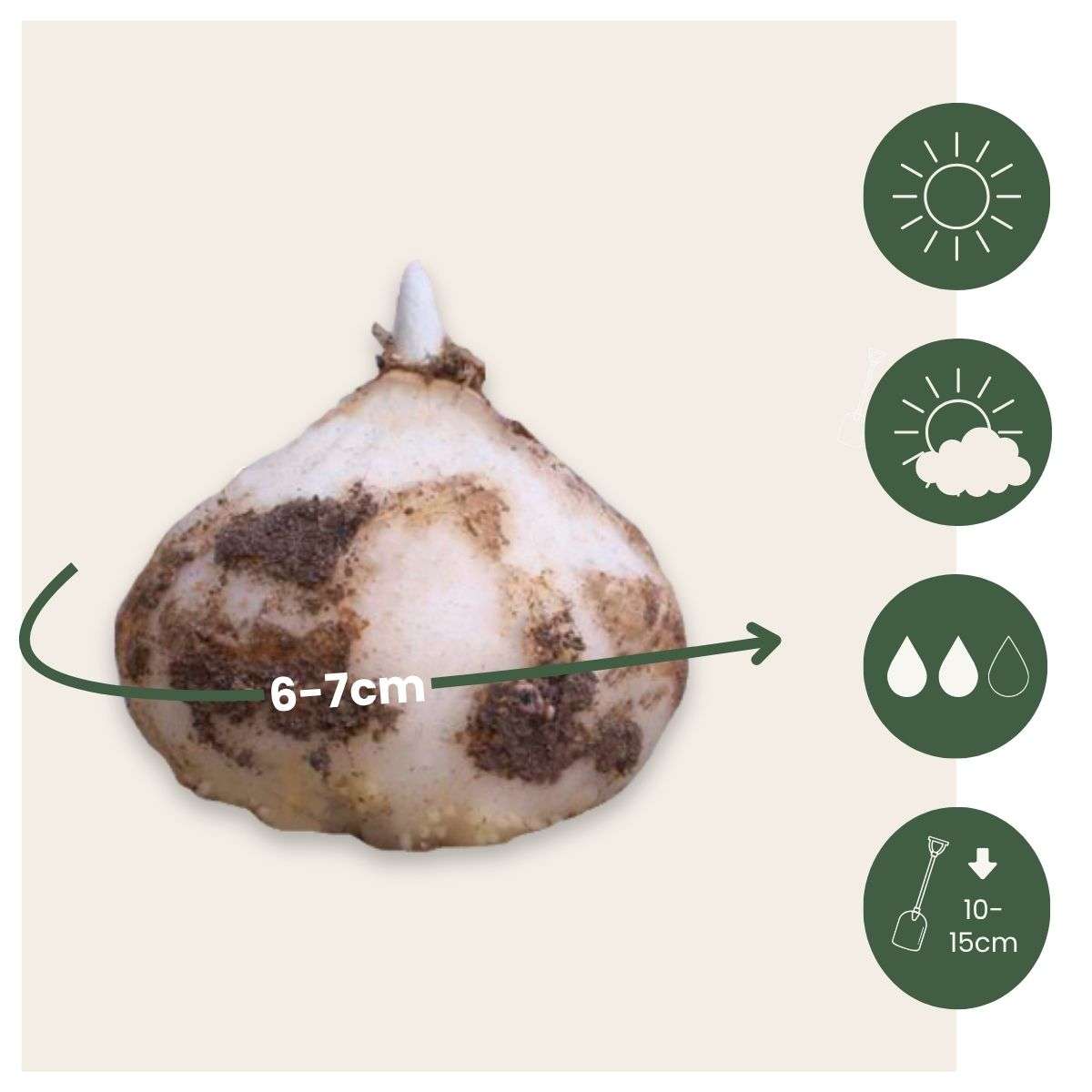 Les bulbes de fleurs ont une circonférence d'environ 6/7 cm à la livraison.
