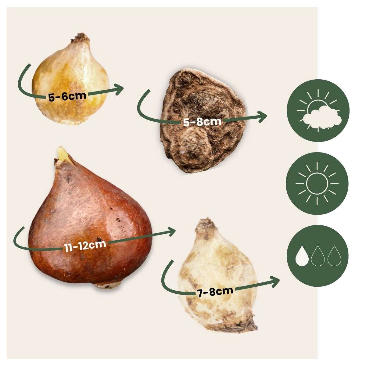 Cet ensemble contient 80 bulbes de fleurs et pèse environ 0,4 kg.