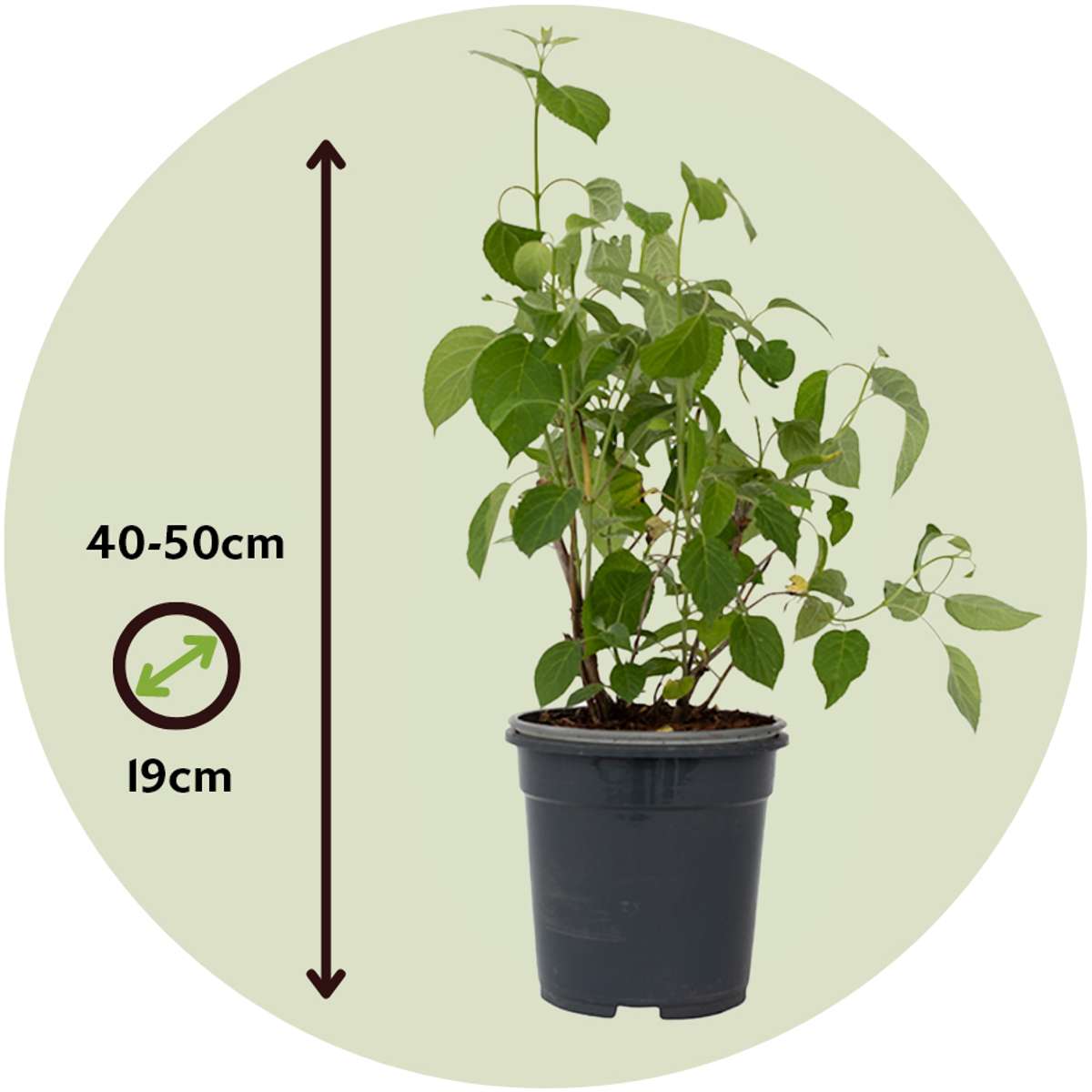 La plante a une hauteur de 40 à 50 cm à la livraison, mesurée avec le pot de pépinière. La plante est livrée dans un pot de pépinière d'un diamètre de 19 cm.