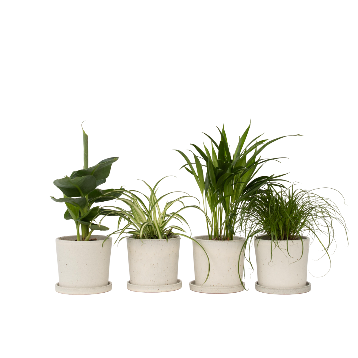 Vous recherchez des plantes qui ne sont pas toxiques pour vos animaux de compagnie ? Alors ce mélange de plantes d’intérieur tendance est fait pour vous ! Le mélange contient quatre plantes qui ne sont pas toxiques pour les animaux et qui confèrent également une atmosphère exotique au salon. Le mélange contient les plantes d'intérieur suivantes : 1x Musa Oriental Dwarf, 1x Areca Lutescens, 1x Cyperus Zumula et 1x Chlorophytum comosum. De cette façon, tout le monde peut profiter des plantes à la maison !