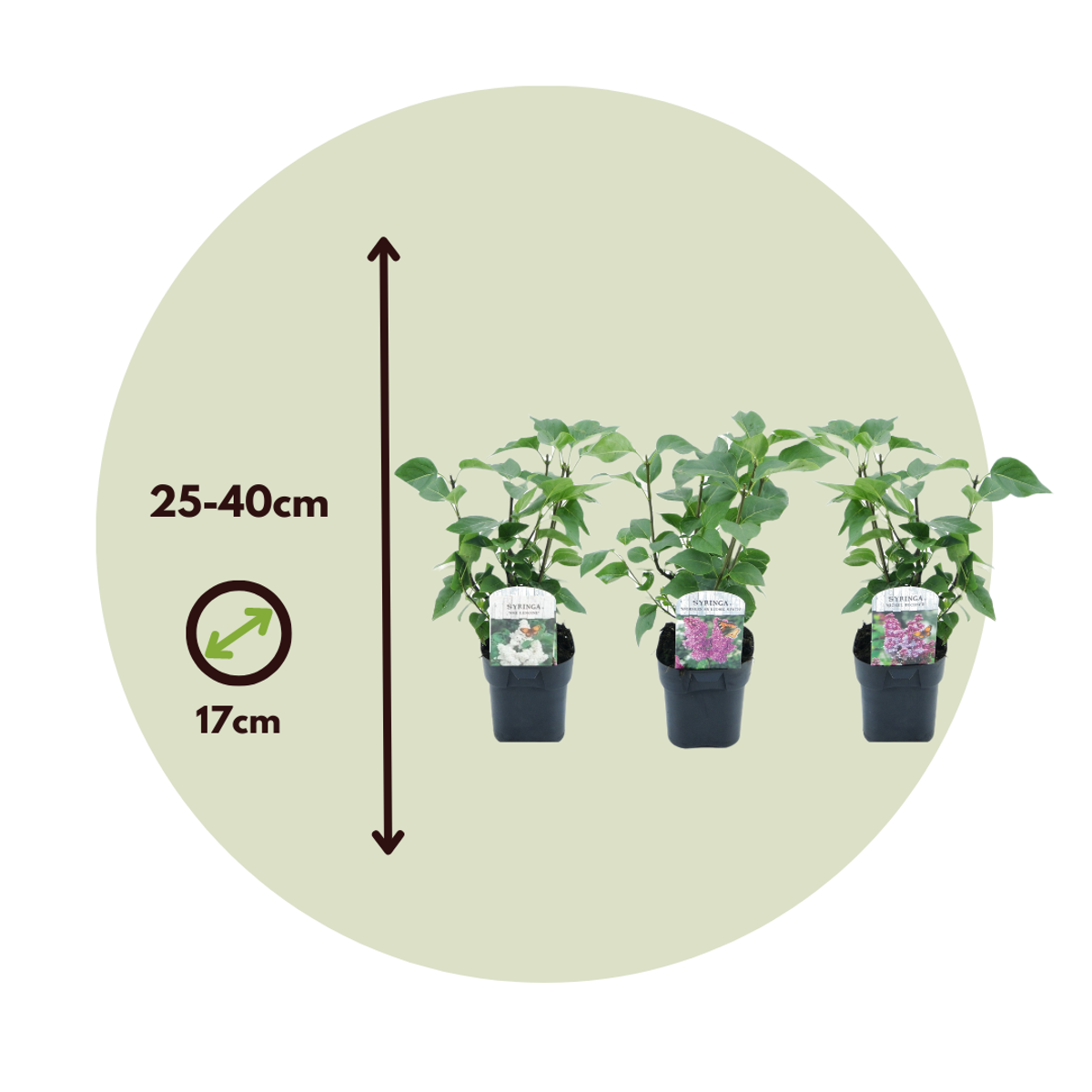 Lilas commun - Set de 3 - Syringa vulgaris - Hauteur 25-40cm - ⌀17cm