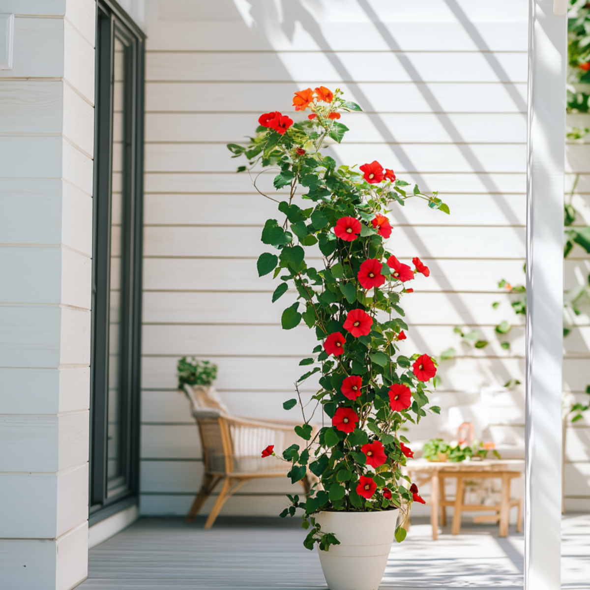 La Thunbergia Alata, mieux connue sous le nom de Black-Eyed Susan, est devenue encore plus colorée. Jusqu'à récemment, la Susan aux yeux noirs n'était disponible qu'en jaune et orange, mais les sélectionneurs ont désormais réussi à créer des cultivars dans d'autres couleurs. Avec ses magnifiques couleurs vives, c'est un splendide sujet pour le patio ou la terrasse. Black-Eyed Susan est originaire d'Afrique tropicale et aime la chaleur. Il doit son nom à son cœur noir frappant, qui ressemble à la pupille d'un œil. Les fleurs sont jaunes, oranges ou rouges. Cette vigne à croissance rapide fleurit tout l'été jusqu'à la fin de l'automne.